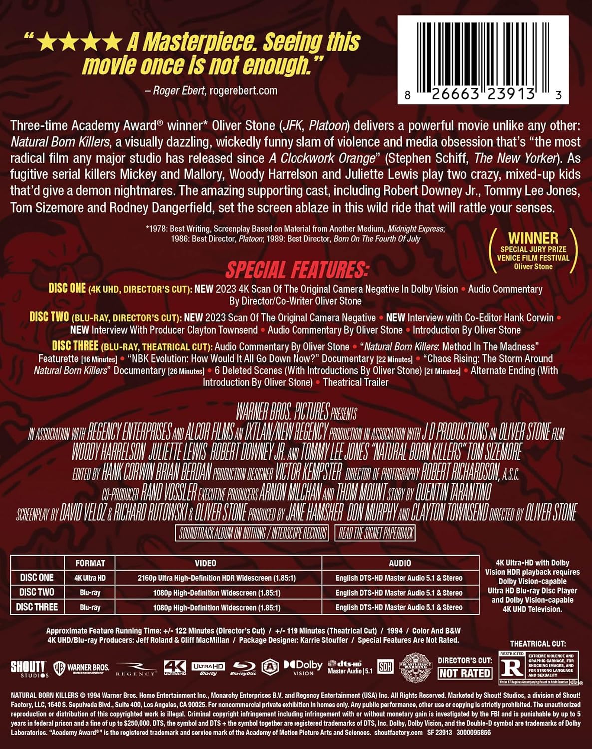 A visceral, boundary-pushing masterpiece now fully restored in stunning 4K with Dolby Vision HDR—Natural Born Killers remains as provocative and shocking as ever.